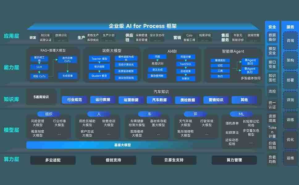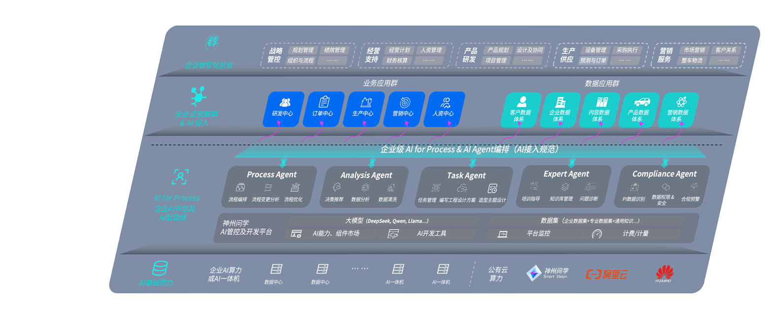 端到端的一站式AI工作空间深度融合了从企业战略规划到日常经营的全流程业务板块,,,,定向解决车企内部领域多、、、部门多、、、、链条长、、、、场景碎片化等难题,,,,支持车企快速构建以AI为核心的生产力写作体系,,,实现任务执行与AI能力的无缝集成与交互