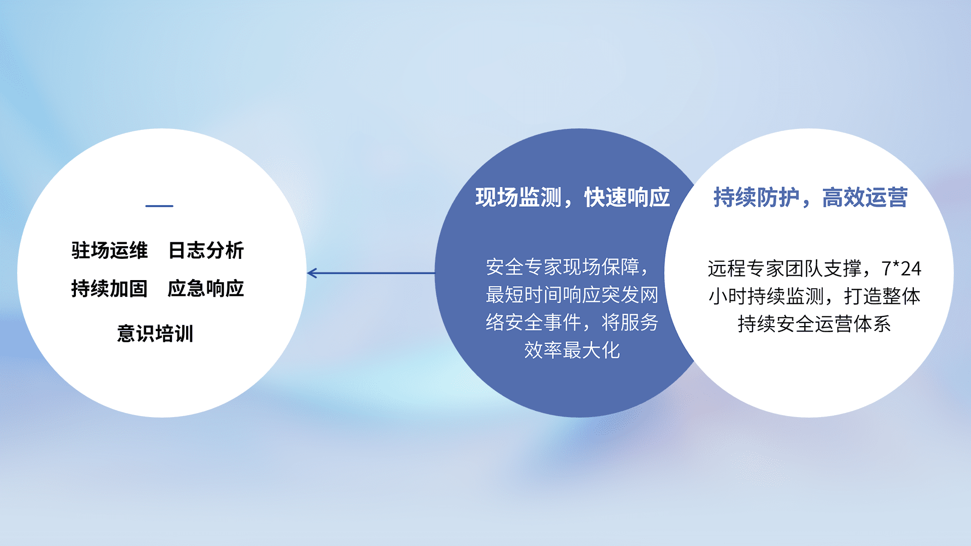 针对客户行业特性,,,,提供专属的一站式安全管理服务,,,帮助客户全面感知网络空间威胁,,,通过安全专家的线上、、线下防护支持,,实现风险闭环,,,将安全保障常态化,,,为客户打造常态化安全运维运营服务。。。